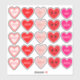 Beautiful personalised pink and red love hearts Stickers. A lovely 25 heart sticker collection of pink, red, magenta and happy hearts for all occasions. Available in several sizes. Joy, sweet, love, hugs and kiss texts can be personalised.