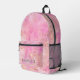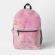 This trendy backpack features pink fire rose quartz pattern. Add your name to personalise.