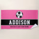 Personalised soccer themed beach towel design for kids and teens features a soccer ball customised with the player's uniform number, custom text for the player's first or last name, and modern text for the soccer club team name. Makes a unique favour gift for tournaments and pool parties with the team! Stylish and modern design features sporty varsity jersey lettering and simple horizontal stripes. The colour scheme of hot pink, black and white can be modified to coordinate with your team colours.