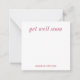 Personalised stationery enclosure notecard with a pink pin stripe pattern in notes of dark deep and vibrant rose pink and bubble gum pink with the sentimental words "get well soon". Tuck it into a flower bouquet or meaningful gift. These minimal flower shop inspired enclosure cards bring a retro kitchen vibe to your most thoughtful moments.