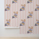 This wallpaper features a floppy, stuffed, calico rabbit playing w/a set of felt alphabet blocks against a pink striped background. Coordinates w/all designs & products in HoMeArts' "Blue Plaid Nursery Art" series.