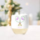 Sip in style with this chic tennis wine glass! Featuring two crossed pink tennis rackets with crisp white head covers decorated with purple whales and accented with green trim, plus three tennis balls in between. Perfect for Racquets & Rosé nights, tennis parties, summer soirées, or as a gift for your favourite tennis lover. Customise yours today and serve up preppy courtside vibes with every sip!