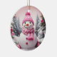Personalised Pink Theme Christmas Snowman Ceramic Tree Decoration