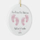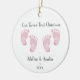 Twice the joy, twice the love — celebrate the arrival of your beautiful twin girls with this Personalised Pink Footprint Ornament, featuring two tiny footprints in soft pink, delicate heart accents, and both of their custom names and birth details.