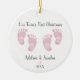 Personalised Pink Twin Baby Girls Footprint Ceramic Tree Decoration
