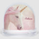This pink snow globe features a realistic unicorn illustration with a customisable text. This is a great ornament to cheer your daughter / granddaughter / girlfriend / wife.