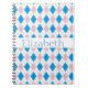 Personalised Pink White Blue Argyle Pattern Spiral Notebook