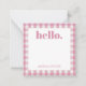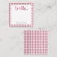 Personalised stationery enclosure notecard with a pink gingham pattern in notes of dark deep and vibrant rose pink bubble gum and white with the sentimental words "hello". Tuck it into a flower bouquet or meaningful gift. These minimal flower shop inspired enclosure cards bring a retro kitchen vibe to your most thoughtful moments.