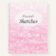 The pink and white marble pattern moves from light to dark in a beautiful gradation on this pretty sketchbook. A pale pink oval is a special place for her name, which appears in an elegant script. The word "sketches" appears on bolder calligraphy. A beautiful place for beautiful drawings.