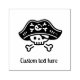 A fun black and white illustration of a pirate skull with a customisable text option. This design features a skull wearing a pirate hat adorned with a skull and crossbones. Perfect for adding a touch of pirate adventure to any project, and you can personalise it with your name or message!