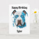 Personalised white Pitbull with blue eyes Happy Birthday card full of dog puns.