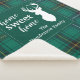 Cute home sweet home Christmas blanket you can easily customise by clicking the "Personalise" button, Featuring deer silhouette and clan Henderson tartan in green and gold chequered design.
