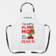 Personalised PLANT MOM LOVES JESUS All-Over Print Apron. The modern, fun design shows PLANT MOM and JESUS in bold red typography, with three different sized plants intertwined in the lettering. The wording reads I'M JUST A PLANT MOM WHO LOVES JESUS. At the top there is a CUSTOMIZABLE NAME, which you can replace with your own. This stylish Plant Mum apron would make a great gift for all those green fingered enthusiasts, who love spending time in the garden or talking to their houseplants. This Christian apron for Plant Moms would also be great for birthdays, Christmas, Mother's Day and throughout the year. Matching gifts are available.
