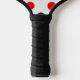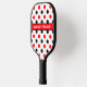 You'll stand out on the Pickleball court with this custom-designed pickleball paddle with this red and black polka dots pattern on a white background with a red and black trimmed band across the centre that has customisable wording on both sides. The front says, "Let's Get Pickled" and the back is personalised with your name in white and your monogram initial in black on a round circle medallion. Email niteowlstudio@gmail.com with any request for changes.