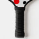 You'll stand out on the Pickleball court with this custom-designed pickleball paddle with this red and black polka dots pattern on a white background with a red and black trimmed band across the centre that has customisable wording on both sides. The front says, "Let's Get Pickled" and the back is personalised with your name in white and your monogram initial in black on a round circle medallion. Email niteowlstudio@gmail.com with any request for changes.