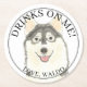Personalised Pomsky Dog Wedding Round Paper Coaster