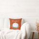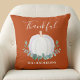 This stylish throw pillow is decorated with a watercolor pumpkin and eucalyptus greenery on a rust background.