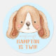 Decorate your puppy dog themed birthday party with these adorable dog stickers featuring a cute puppy dog with a blue background. Easily change the background colour and customise the wording with the online editor!