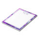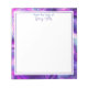 Personalised notepad with purple and blue fluid art border.