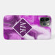 Monogrammed Purple and White Marble Swirls Fluid Art Phone Case.