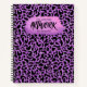 A girly purple glitter leopard print personalised sketchbook. The words in a hand written font personalised with your name below. Customise the sketchbook with the font and name of your choice to make someone feel extra special. Makes a fun gift for birthdays or for Christmas. Comes in a variety of colours. Designed for you by Blackberry Boulevard.