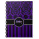Personalised Purple Black White Striped Damask Spiral Notebook