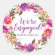 W're Engaged is written in a beautiful flowing purple script. Your names are below written in a simple modern capitalised font. All of the text is easy to customise. Change the font, size or colour too. A gorgeous purple,pink and red wreath with lots of trendy greenery surrounds it. These stickers coordinate with our Engagement Party invitations and supplies. You should be able to see a link to them on this page. Please contact me, if you need help finding them.