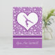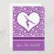 Powerful purple floral pattern Gymnastics party invitation. In the back is a rich purple covered in adorable white flowers. There is also a gymnast silhouette in a big white heart. Add your own text before ordering! Additionally, use the "customise it" button to change the fonts and colours!