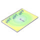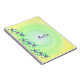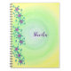 Pretty purple flower pattern with green leaves makes the border along the left hand side of these custom notebooks. The background is a pastel light green and yellow in a circle design. There is a template placeholder for a person's name, etc., in purple letters, to the right of the flowers. Thank you for shopping at CherylsArt on Zazzle.
