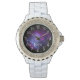 Cute personalised white numbered watch face with a beautiful blue and purple galaxy cluster photo. You can customise or change the colour of the name design, and the white numbers. Try your own photo to create your own gift.