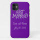 Purple Just Married Words printed on an iPhone 4 Barely There Case-Mate Case. Perfect for newly weds. Change your background colour by selecting "customise it".