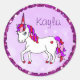 Personalised Purple Rainbow Horned Unicorn Heart Classic Round Sticker