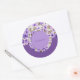 The sticker is made on wonderful paper and had no problem sticking to the bag that I purchased to put it on. I wanted to find a design that would be cute for the bride and groom and this one fit the bill as it has cute "bees" buzzing around and the wedding was taking place in a town called "Bee Cave". The packaging was great and protected the stickers. The website is easy to navigate and there are so many color choices. I had no problem finding a color that the bride was using on everything else selected. The design was adorable and there were many to choose from. You can make the figure as larger or smaller and you can place the photo and writting whereever you want to in the sticker. The printing is fabulous..better than expected.
