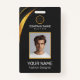 Modern black and gold badge design features your business logo and custom QR code on the back. Add employee name, company name/title, logo (photo or other graphic) and contact information. You can customise the text size, font and colour to suit your own personal preference. Input a URL address to create a scannable QR code linked to your website, social media profiles, or any other platform.