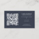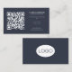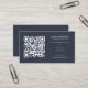 A Personalised QR Code Modern Custom Design Business Card In Navy Blue. Customise this business card with your own QR Code, company logo (resize and adjust in edit area), name and tagline/text.