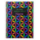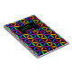 Abstract geometric design of interlacing circles, bright rainbow colours on black background