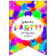 All the colours of the rainbow feature on this vibrant personalised party bunting. Come rain or shine this colourful bunting will inject fun into your party decor.