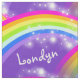 Bright and colourful rainbow add your own name patterned fabric. Fabric can be personalised with your own name choice, currently reads Londyn. A great personalised fabric ideal to make items for vibrant girls who love colour, background colour can also be changed if required. Original art and design by Sarah Trett.