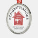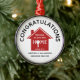 A stylish NEW HOME ornament, designed as a realtor-to-client closing gift. ALL TEXT IS FULLY CUSTOMIZABLE so you can personalise the wording to suit your corporate branding. The text reads CONGRATULATIONS and BLESSINGS ON YOUR NEW HOME with optional Joshua 24:15 Bible verse - As for me and my house, we will serve the Lord. The image shows a RED house with white typography. The O of HOME is replaced with a key. At the bottom, you can add your name/company name and date. Matching items available so you can create corporate gift sets for your clients. Other colours available.