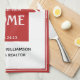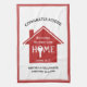 A stylish NEW HOME kitchen towel, designed as a realtor-to-client closing gift. ALL TEXT IS FULLY CUSTOMIZABLE so you can personalise the wording to suit your corporate branding. The text reads CONGRATULATIONS, BLESSINGS ON YOUR NEW HOME with Joshua 24:15 Bible verse - As for me and my house, we will serve the Lord. The image shows a RED house with white typography. The O of HOME is replaced with a key. At the bottom, you can add your name and company name, or personal message to your client (up to three lines recommended). Matching items available so you can create corporate gift sets for your clients. Other colours available.