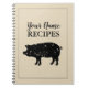 Personalised recipe book spiral notebook for chef cook. Cool design with pig logo. Save and write down your secret recipes. Elegant brush script typography template for name. Beige or custom colour background. Add your own name. Pork meat farm animal design. Cute baking and cooking gift idea for mum, dad, brother, father, grandpa, butcher, mother, wife, aunt, sister, grandma, daughter, restaurant owner, boss, co worker, colleague, dietician, nutritionist etc. Trendy school and office supplies for home or work. Also nice for bacon lovers.