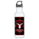 The product design features a silhouette of a deer on a classic red and black buffalo plaid pattern. Combined with your own personalised text, this composition makes a rustic, modern, and unique water bottle - Gift idea for Thanksgiving, Christmas, family reunion, or any other special gatherings!