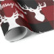 The product design features a silhouette of a reindeer on a classic red and black buffalo plaid pattern. Combined with your own personalised text, this composition makes farmhouse country-style, modern, and unique wrapping paper for Christmas holiday and more!