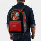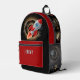 Fun backpack with bold red and black colours and an outer space theme. Rocket on the front with your name.