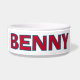 Personalised Red with blue outline white background name pet bowl. Dog bowl. Personalised dog. Custom dog bowl. Male dog. Dog dish.