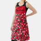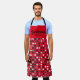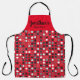 Personalise this modern graphic circles design apron in shades of red, grey, white and black on a red background. Choice of background and strap colours as well as font style and colour options.