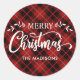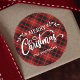 Personalised Red Black Christmas Plaid Classic Round Sticker