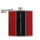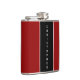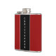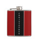 Stylish Red masculine flask with two thin white stripes and a wide vertical Black stripe on the centre with custom name on it.