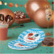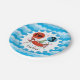 Personalised Red Crab 3rd Birthday paper plates, cute and colourful, great for any ocean or sea theme birthday party, features a red crab in a polka dotted party hat holding red and blue balloons surrounded by confetti! These ocean red crab paper plates feature a border of blue waves and text that reads I'm 3! You can easily add the birthday child's name to personalise these third birthday red crab plates.