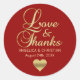 Personalised RED Gold LOVE & THANKS Wedding Classic Round Sticker